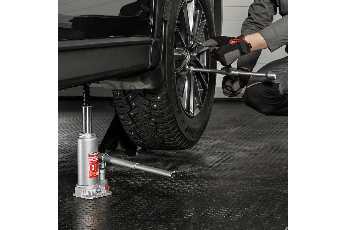Гидравлический бутылочный домкрат MATRIX MASTER 50752 поднимает грузы общей массой до 3 тонн. Подъем осуществляется путем физического воздействия пользователя на рычаг. Данная модель эффективна при выполнении ремонтных работ с автомобилем. Плавный и размеренный ход штока обеспечивает удобную работу.