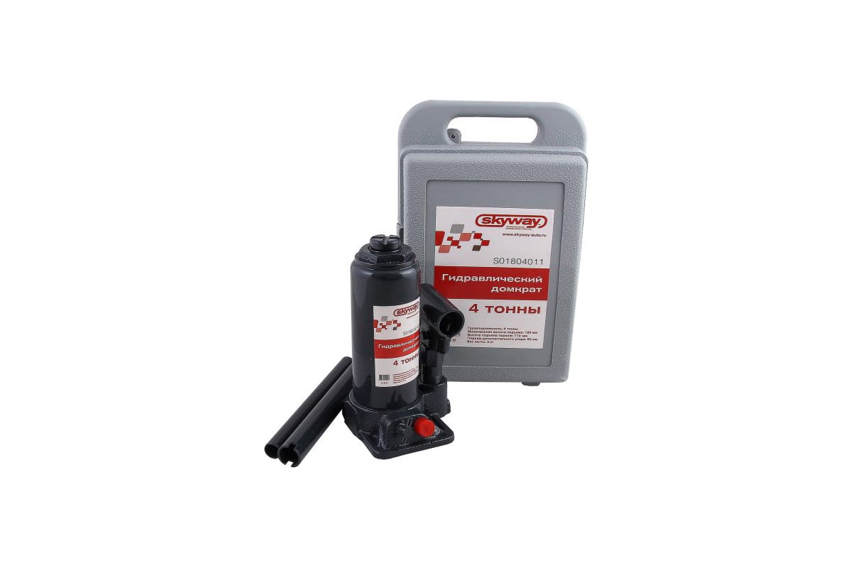 Гидравлический бутылочный домкрат SKYWAY 4т h 180-350 мм с клапаном в кейсе S01804011