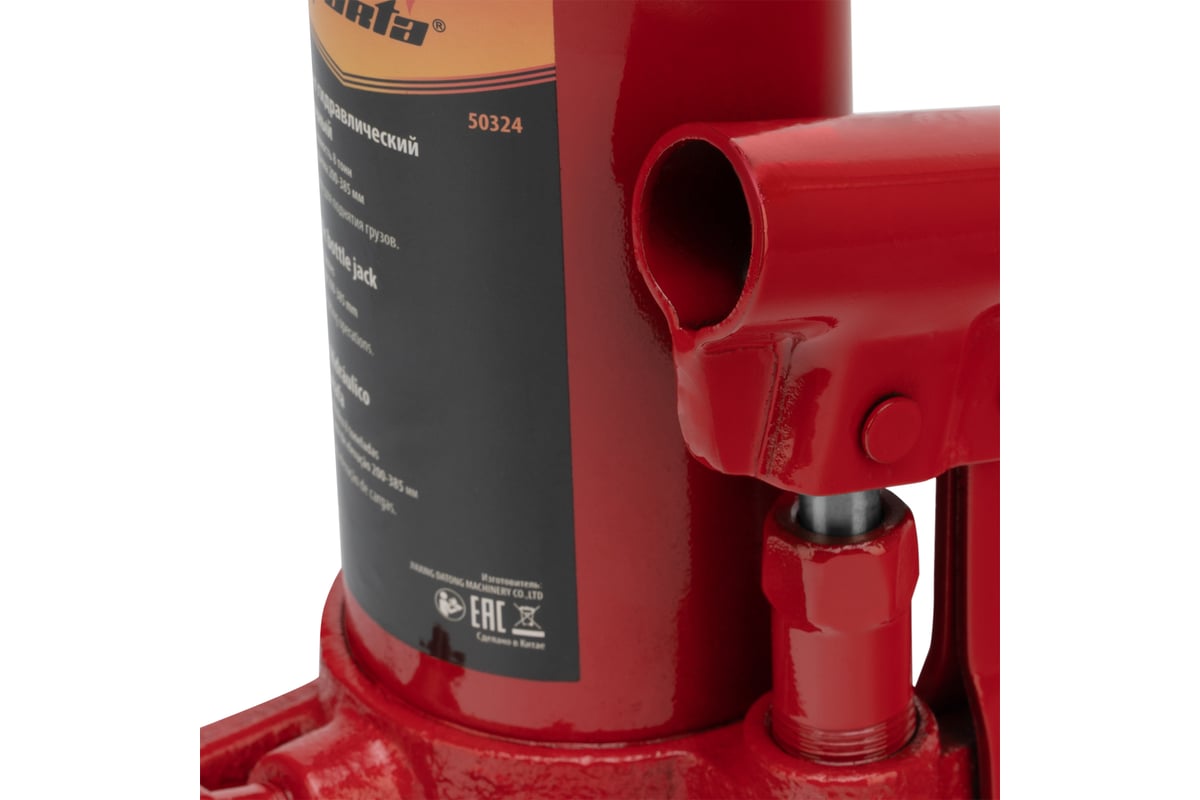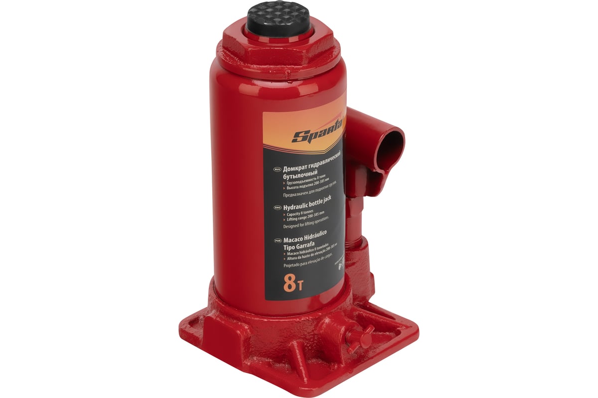 Домкрат гидравлический бутылочный SPARTA 8 т, h подъема 200-385 мм 50324
