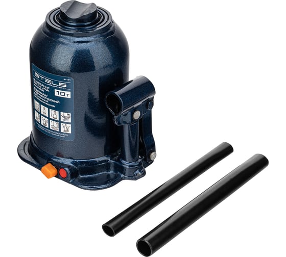 Домкрат гидравлический бутылочный Stels 51151, телескопический, используется для поднятия грузов весом до 10 т с на высоту 180-430 мм. Не требует больших усилий и оптимален для автомобилей с большим клиренсом. Домкрат можно использовать в гараже для самостоятельного ремонта машины или в автосервисе для решения профессиональных задач.