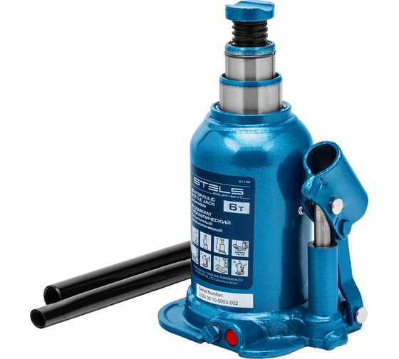 Домкрат гидравлический бутылочный Stels 51149, телескопический, используется для поднятия грузов весом до 6 т с на высоту 180-410 мм. Не требует больших усилий и оптимален для автомобилей с большим клиренсом. Домкрат можно использовать в гараже для самостоятельного ремонта машины или в автосервисе для решения профессиональных задач.