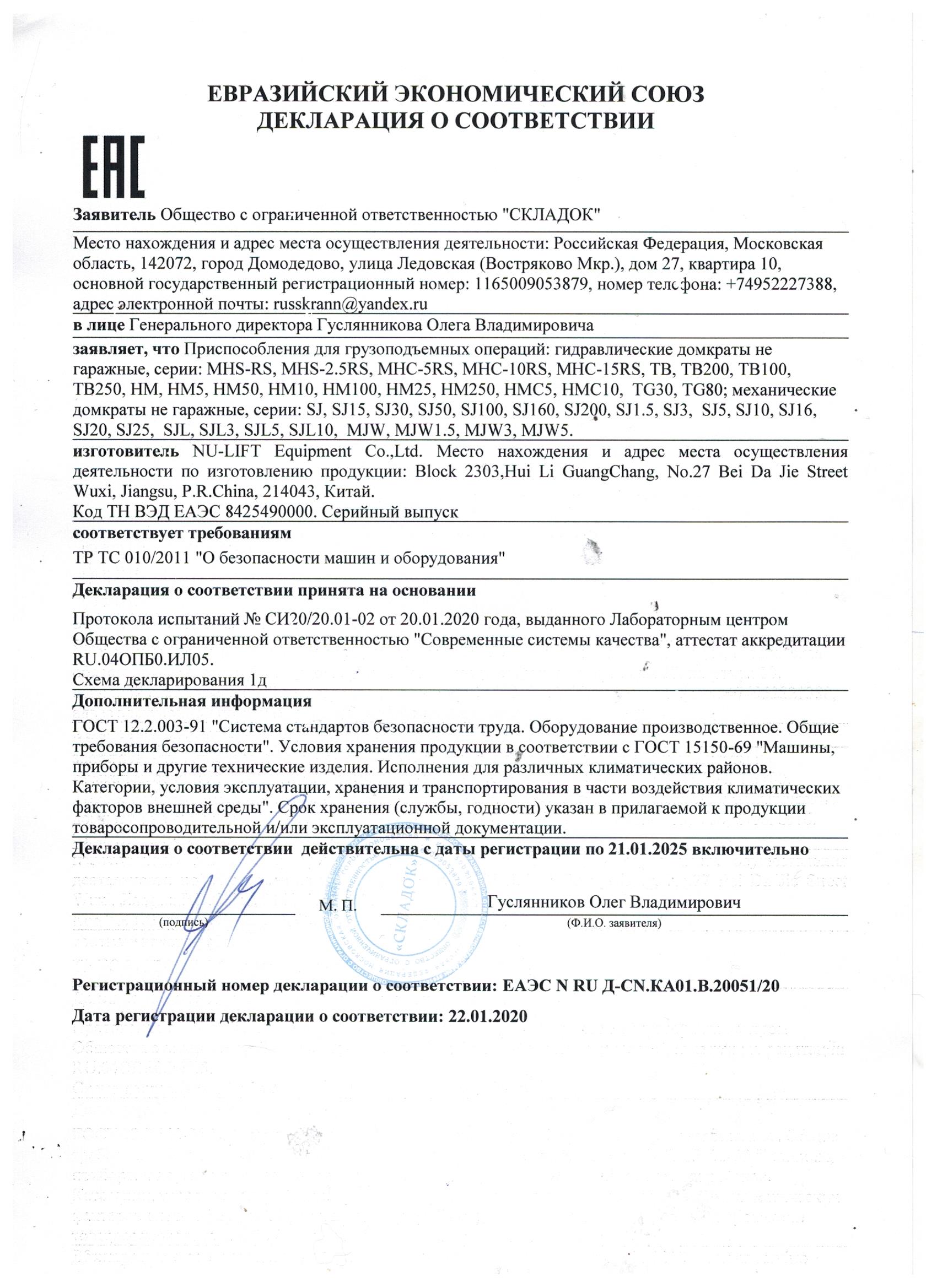 Технические характеристики домкрата NU-LIFT MHC-15RS