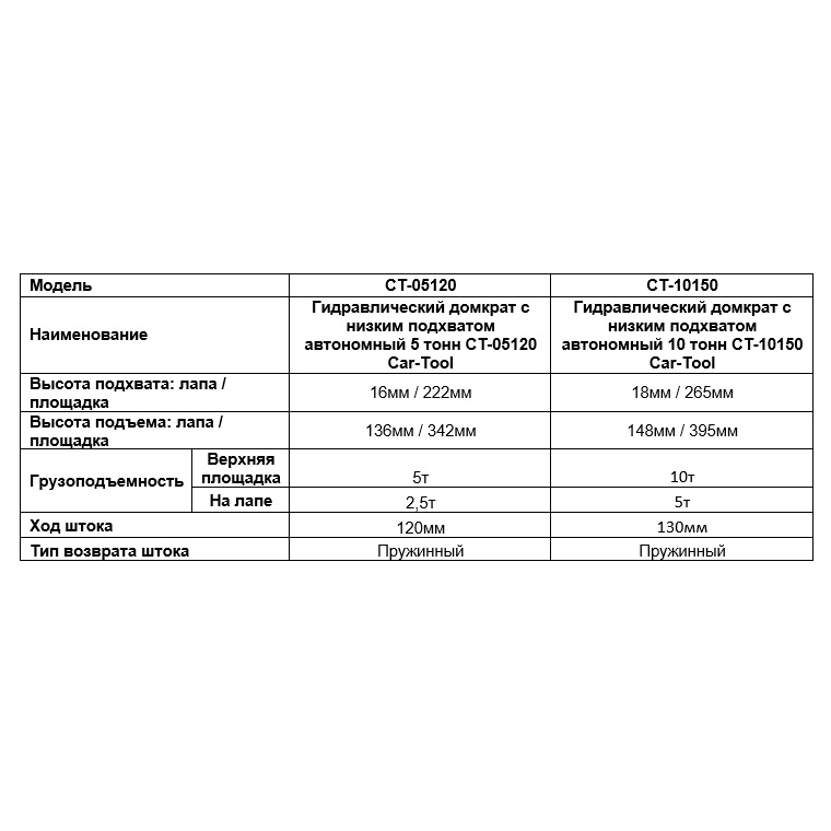 Гидравлический домкрат с низким подхватом Car-tool автономный 10 тонн CT-10150