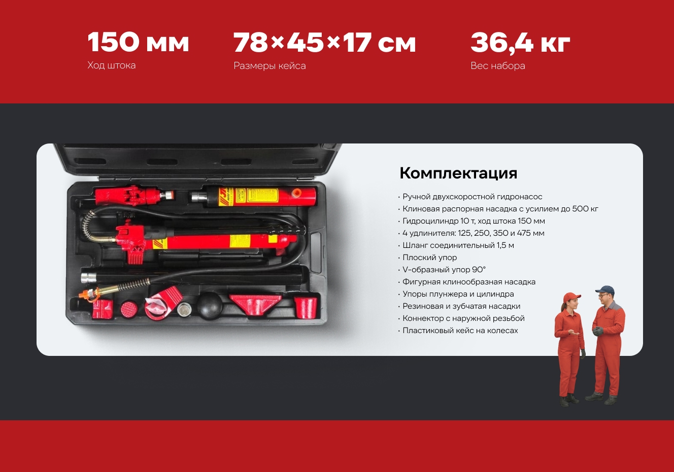 - Пластиковый кейс гидравлического набора для кузовных работ (усилие 10т, 17 предметов) JTC-HB210 гарантирует сохранность оборудования при транспортировке и хранении;