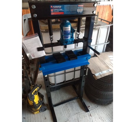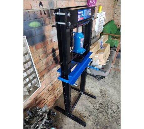 Приехал брак, рабочий стол не помещался на стойки пресса. Сделал возврат. Имейте ввиду, по возможности проверяйте при получении, коробки весят немало, обидно будет потом тараканить обратно. Ещё швеллера, которые стойки типа, самые длинные еще- они произведены путём гибки, имейте ввиду. Лично я не особо доверяю таким, кому-то может подойдет, но мне нужен цельный нормальный П-образный швеллер. В домкратах бутылочных я не особо конешно, но мне показалось что приехавший домкрат какой-то маленький, примерно размером с 1л бутылку кока-колы. Оригинальных надписей на нём нет, только заводская от фирмы, типа 20тон, но как я уже сказал есть сомнения