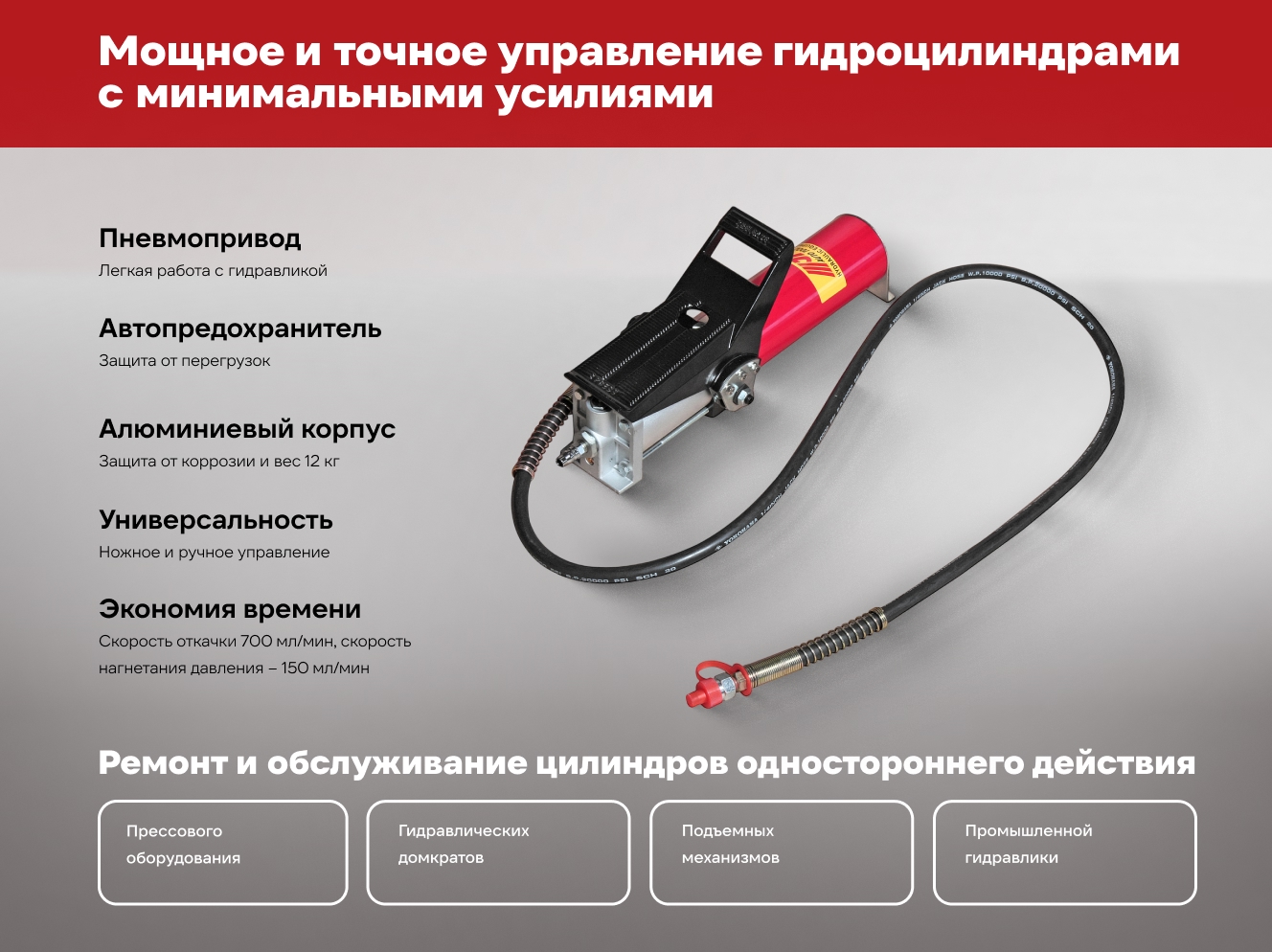 - Функция ограничения давления (до 10000 psi) предохраняет компоненты гидравлической системы от перегрузок;