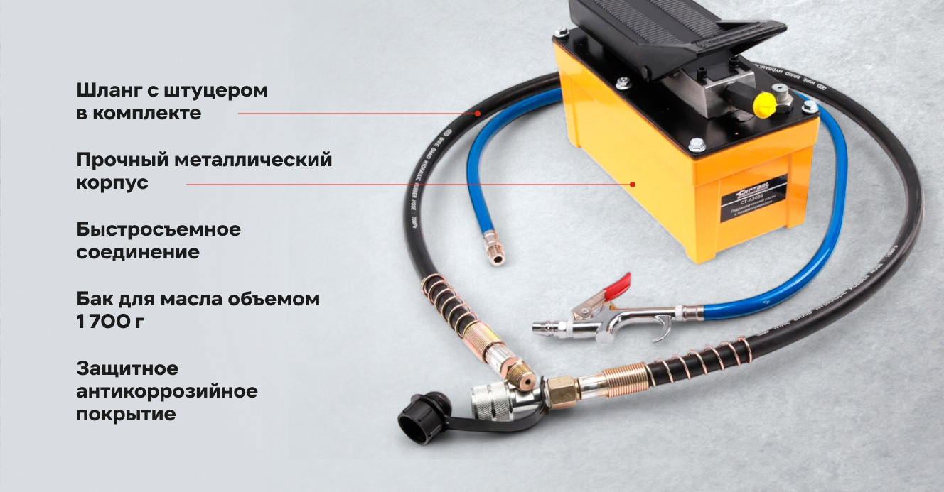 CT-A3036 Гидравлический насос предназначен для создания давления в гидросистемах, где требуется значительное усилие. Насос является надежным источником создания давления для гидравлического инструмента. Для работы с насосом необходим подвод сжатого воздуха.