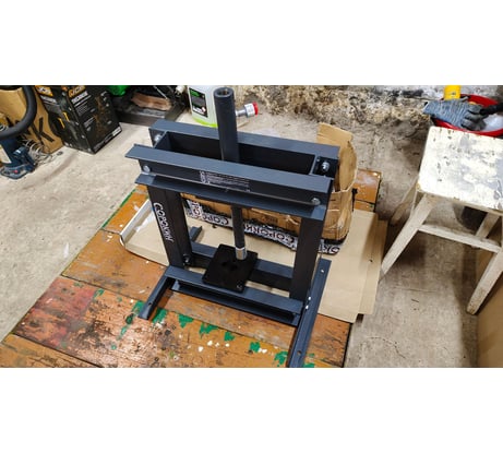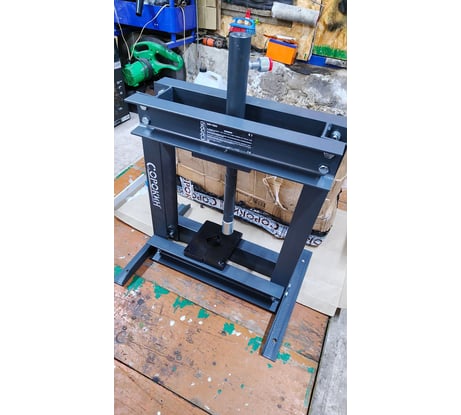 Общее впечатление такое себе. Товарный вид отсутствует. Коробка из магазина представляла собой сверток цыганский... Вся в скотче, коробка "в мясо". Внутри какие то узлы из стрейча... Узелок с болтами. На резьбе грязь и коцки. Такое ощущение что у производителя не цех а помойка на которой собирают что есть. А еще называется "Инструмент с именем". Инструкция по сборке отсутствует. Инструкция по эксплуатации там же (её по факту нет). Вложена бумажка - такая же есть на сайте - где в одном буклете описаны все возможные преса сорокиных. Основная конструкция из швеллера - толщина приличная - не думаю что его порвет сразу - походит. А вот вертикальные стойки сварены из листа... Я вот не пойму почему постоянно норовят сэкономить за наш счет? Насколько было бы дороже сделать эти стойки тоже из швеллера... на 500р? В общем намекаю - это его слабое место. Радует одно что данный узел работает только на разрыв. Не удобно использовать насос - производитель не подумал что эту балду можно было бы куда то и прицепить на устройстве - с возможность перестановки. В общем пресс давит. Надеюсь поработает.
