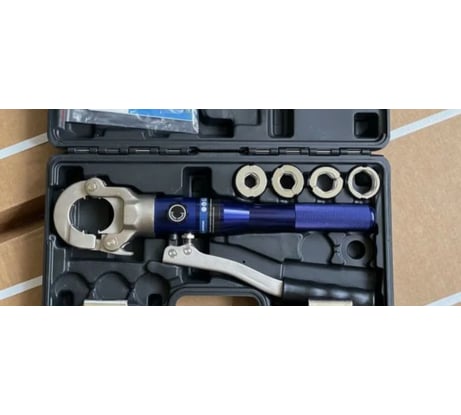 Крепкий и точный, опрессовку труб делаю быстрее, чем с ручными клещами. Насадки прочные