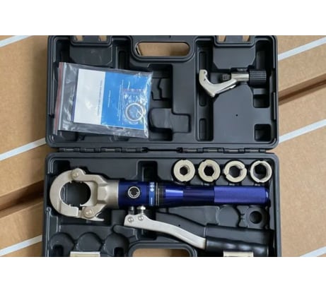 Обжимаю фитинги до нужного размера быстро и равномерно, инструмент компактный и удобен в руке. Довольны точностью обжима и долговечностью матриц