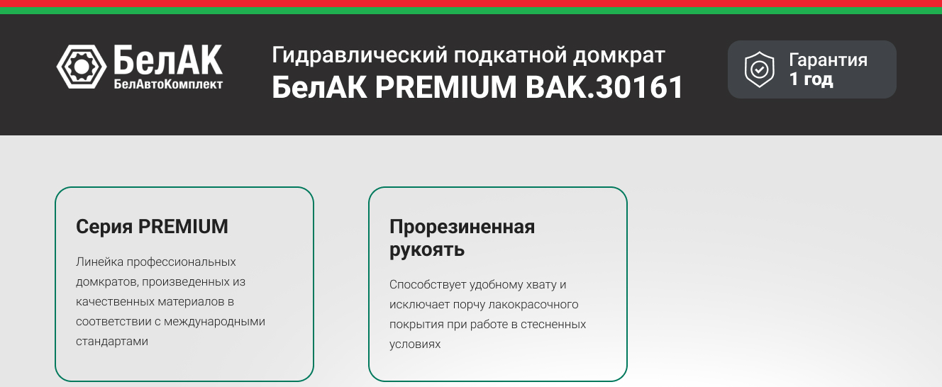 Домкрат автомобильный гидравлический подкатной разработан российским производителем БелАК, награждённым десятью национальными премиями Автокомпонент года. Включая самую престижную награду - "Бренд Года".