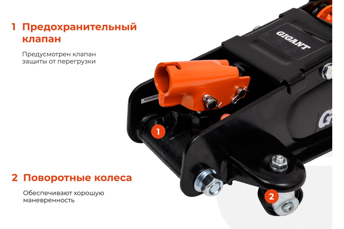 Гидравлический подкатной домкрат Gigant GSJL-2T предназначен для подъема грузов массой до 2 т на высоту до 380 мм. Применяется для обслуживания автотранспорта, благодаря сверхнизкому профилю подходит для автомобилей с небольшим клиренсом. Домкрат компактен и может использоваться автовладельцами самостоятельно.