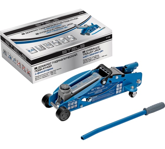Гидравлический подкатной домкрат с фиксатором 2,5т 140-385 мм STELS 51152 за счет малой высоты подхвата можно эффективно использовать при работе с большинством легковых автомобилей.