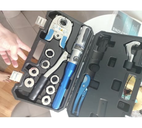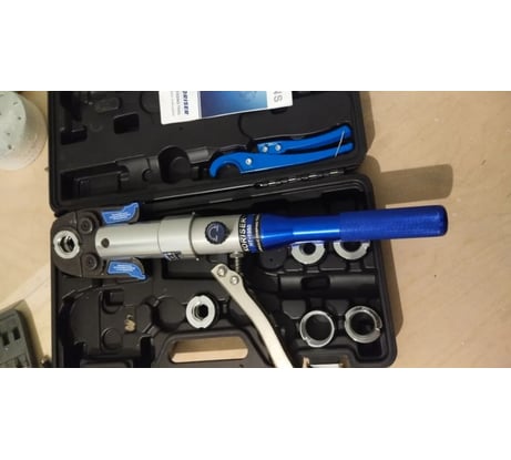 Купил для обжимки фитингов при монтаже водопровода. Работает быстро, давление достаточное, соединения получаются герметичными