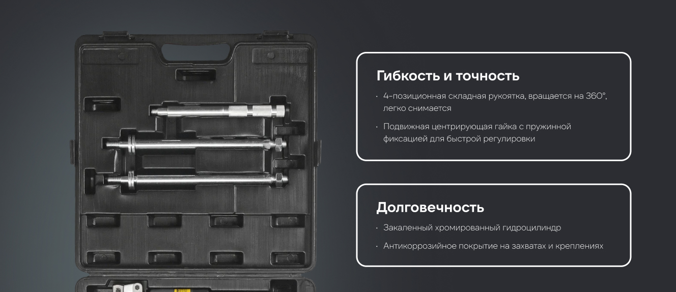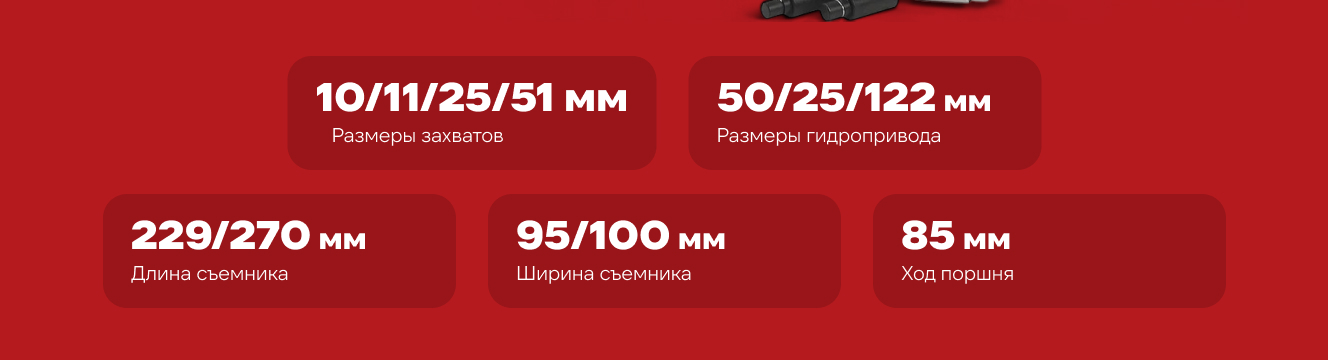 - Съемник оснащен закаленными хромированным гидроцилиндром;