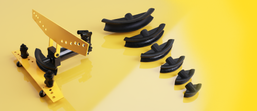 Инструмент имеет размыкаемую раму, облегчающей установку трубы, и сменными колодками для широкого диапазона диаметров труб, обеспечивающих угол изгиба от 0° до 90°. В качестве рабочее жидкости следует применять масло для гидравлического инструмента. Трубогиб оснащен клапаном снятия давления для возврата штока в исходное положение при снятии нагрузки.