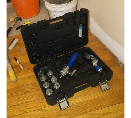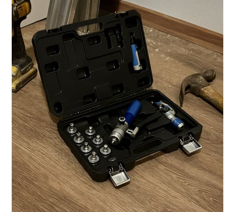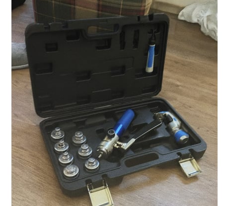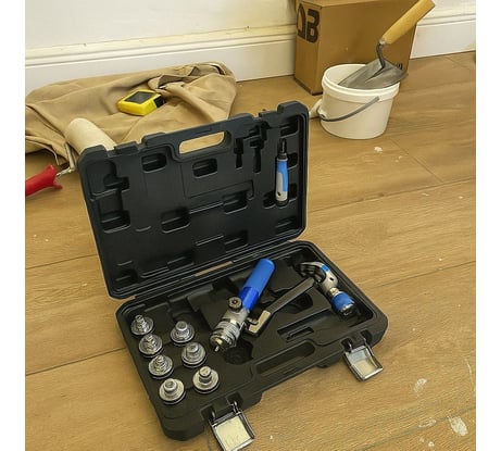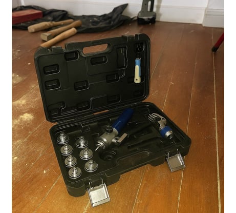 Ещё более мощная версия, подходит для толстостенных труб — расширение ровное, без трещин. Удобно менять насадки, сборка крепкая. Принцип гидравлики + сменные матрицы — гарантия качества сварных/обжимных работ. Отличный выбор для серьёзных монтажей.