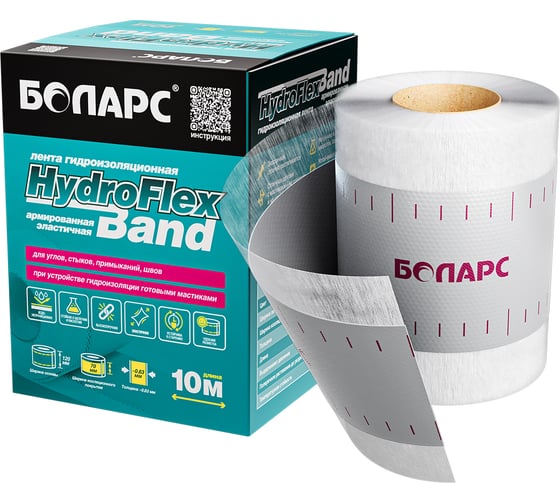 БОЛАРС Гидроизоляционная лента HydroFlex Band – это эластичная армированная гидроизоляционная лента из полиэфирного полотна с покрытием из термопластичного эластомера. Предназначена для гидроизоляции в углах, местах стыков, примыканий и швов в сочетании с гидроизоляционными мастиками БОЛАРС HydroFlex БОЛАРС, Полиакриловая, БОЛАРС Полиакриловая Кварц/Quartz. Применяется во влажных помещениях и зонах контакта с водой (кухни, ванные, балконы, подвалы, санузлы, душевые и др.)