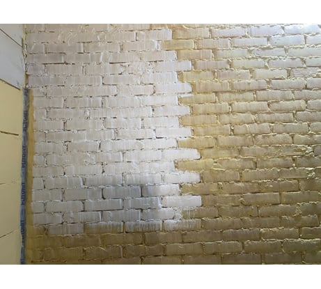 Классная вещь. Решил в ванной в бетоне сделать быстрый ремонт без выравнивания и штукатурки. Стены все разные - бетон, газобетон, кирпич. Покрыл все стены - на кирпич под покраску, на газобетон под панели пвх на направляющие, на ровный бетон под панели с приклейкой. На пол нанес на наливной пол под укладку кварцвинила. Хотя указано что эта гидроизоляция чисто под будущую плитку - посмотрим. Краска на нее ложится божественно. По результатам наклейки панелей на стену и кварцвинила будем оценивать окончательно. Сначала экономил, но под конец уже не знал что намазать по 3-му слою. Отливал по немногу и закрывал - даже не подсохла за 2 недели. Цвет покрытого кирпича на фото - не очень отражает факт. В реале он поприятнее.