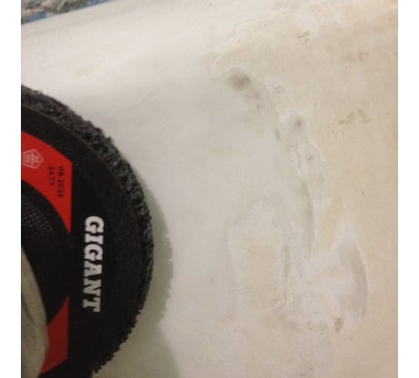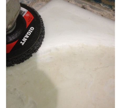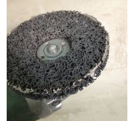 Достаточно эластичен, компромисс жесткого и мягкого. За счёт большой толщины и полужёсткости сумел зачистить вогнутые поверхности (ванна, подготовка к наливному акрилу). Для ускорения использовал переменно жёсткий фибровый диск, но окончательную зачистку всех углов и неровностей старой чугунной ванны делал этим диском - красота. Дале если забивается (смотри фото), то это быстро проваливается и выкрашивается в процессе работы, за счёт структуры материала.