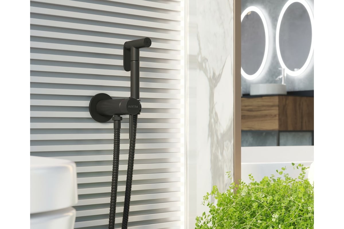 Гигиенический смеситель AVRORA-WM черный Avrora Soft в матовом черном цвете AV8001B