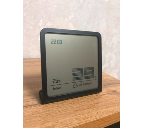 хрупкий, показания читаются при углах близких к 90, от 45 град практически слеп. Неприлично много пустого экрана. Непонятно как работает гигрометр - при проверке установки на увлажнителе воздуха, причем рукой я направлял струю холодного пара на сам прибор, термогигрометр стоит в конденсате, поднял влажность с 40 до 68% за 5 минут, но не до 100% - либо слишком сглаживает показания, либо слишком медленный, дальше эксперименторовать стоять надоело. Хотя смысла сглаживать показания не вижу - у него памяти нет, инфу никуда не раздает, не собирает, не сохраняет. Почему-то не показывает заряд батареи - нет пиктограммы. Может, пока заряд на батарее высокий?