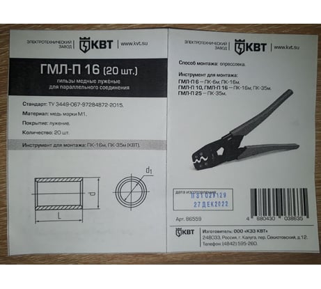 Отзывы о гильзе КВТ ГМЛ-П 16 (20шт.) 86559