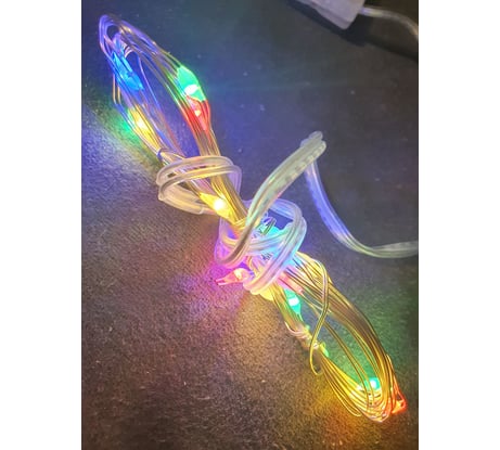 Оптимальный размер для небольшой подсветки. В целом, разноцветка смотрится довольно красочно, а светит ярко. У данной гирлянды не просто RGB цвет, а RGBY. Т.е., помимо красного, зеленого, синего, здесь также присутствует желтый цвет (Yellow). Контактная группа неплохо исполнена: свет не пропадает при монтаже.
