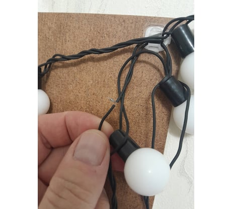 Эту гирлянду приобрели и развесили вместе с цветной гирляндой этой же фирмы. Получилось очень оригинальное украшение, которое в светлое время суток выглядит как крупные белые бусы, а в тёмное светится красивыми яркими шариками.