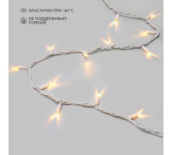 Гирлянда Neon-Night нить 20м, 200 LED теплый белый, белый каучук, 24В, IP67, постоянное свечение 315-506