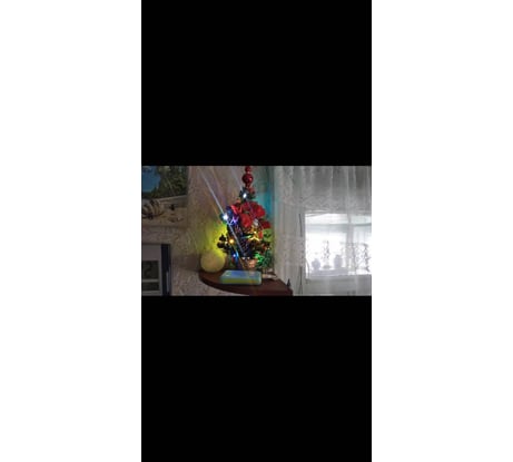 Отлично смотрится на ёлке, убрала лампочки в хвою - получилась очень симпатичная подсветка. Сейчас не буду устраивать " танцы с бубном", но на следующий год хотелось бы купить еще пару гирлянд и поместить в высокие стаканы для подсветки снизу.