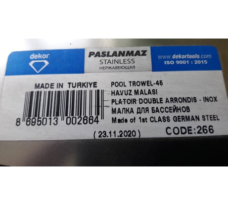 Отзывы о гладилке для бассейнов DEKOR HASSAN нержавеющая сталь, 120х450мм пластиковая ручка 266