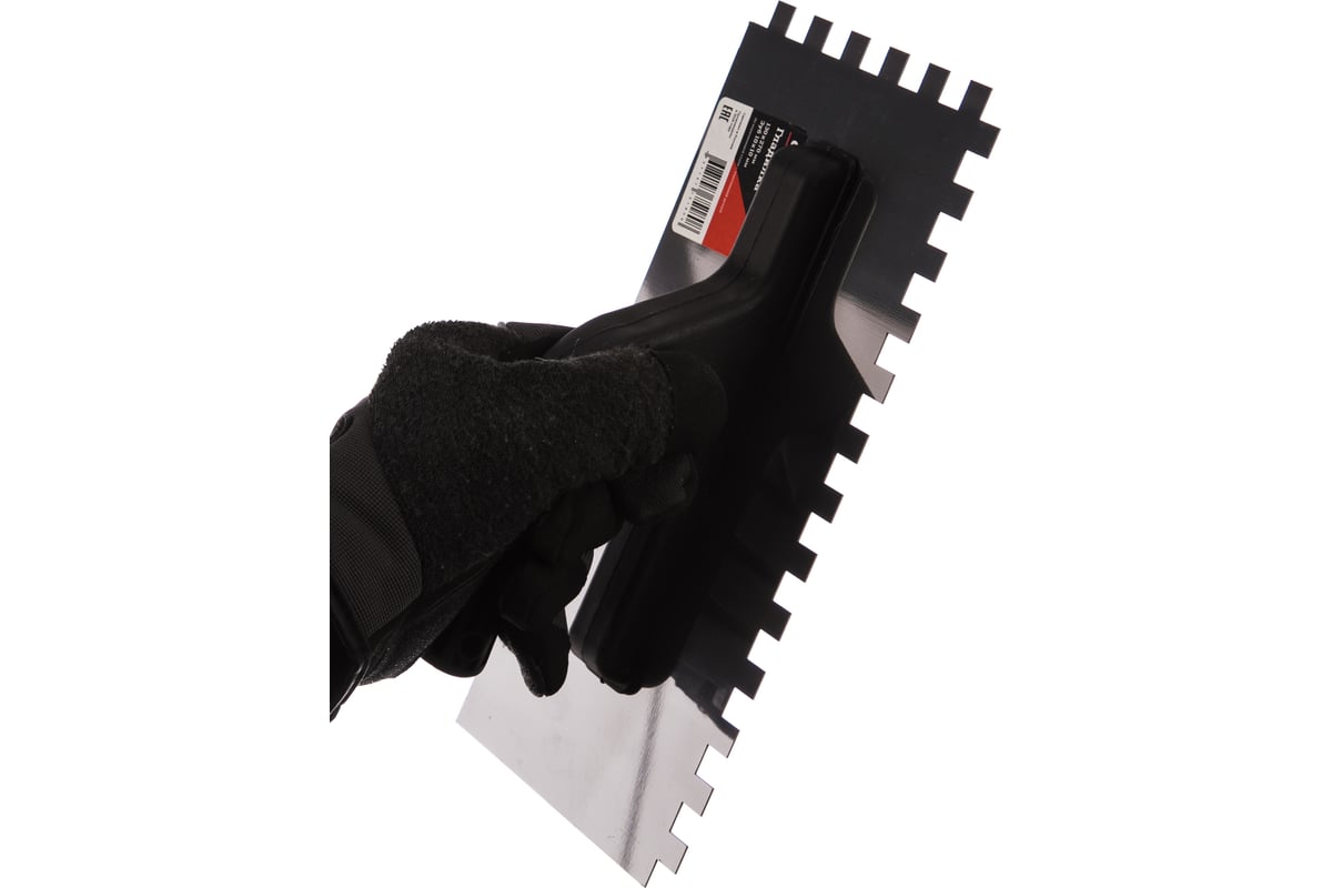 Гладилка Gigant 130х270 мм зуб 10х10 мм из нержавеющей стали с пластиковой ручкой SPT 050 используется в отделочных работах. С ее помощью можно без труда наносить и разравнивать строительную смесь, клеевые составы и различные растворы. Инструмент позволит разгладить неровности и швы на полу, потолке и стенах. Зубчатая сторона предназначена для нанесения растворов при укладке плитки: за счет зубцов смесь равномерно распределяется, легко выравнивается толщина слоя, что повышает качество и скорость отделки, уменьшает расход раствора.