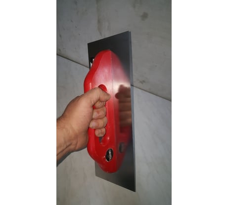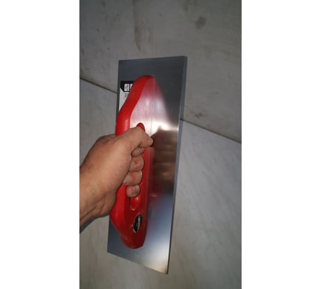 Отличная гладилка. Ровная, прочная, удобная в руке, легкая благодаря деревянной ручке. Шпатлевал стены. На зеркальной поверхности заметны сварные пятна, но они не выпуклые, следов не оставляют.