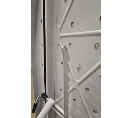 Доска не понравилась - тонкий металл. От малейшего нажатия на кафельном полу ноги разъезжаются. Фиксатор высоты с облоем от резки (заусенцы) - хоть не видно под доской, но за время эксплуатации хоть раз, но порежешься. Сварочные швы как после студентов-сварщиков.