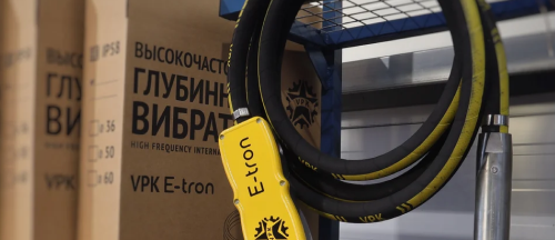Высокочастотный глубинный вибратор VPK E-tron 50 со встроенным преобразователем для уплотнения и равномерного распределения бетона в укладке на стройплощадках, а также на производстве ЖБИ. Высокая степень уплотнения обеспечивается за счет мощного, надежного электродвигателя, высококлассных подшипников и эксцентрика, находящихся в вибробулаве.