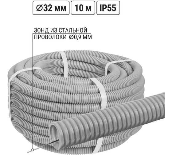 Гофра TDM ELECTRIC для кабеля 32мм ПВХ с зондом 10 метров легкая 350Н SQ0401-0124
