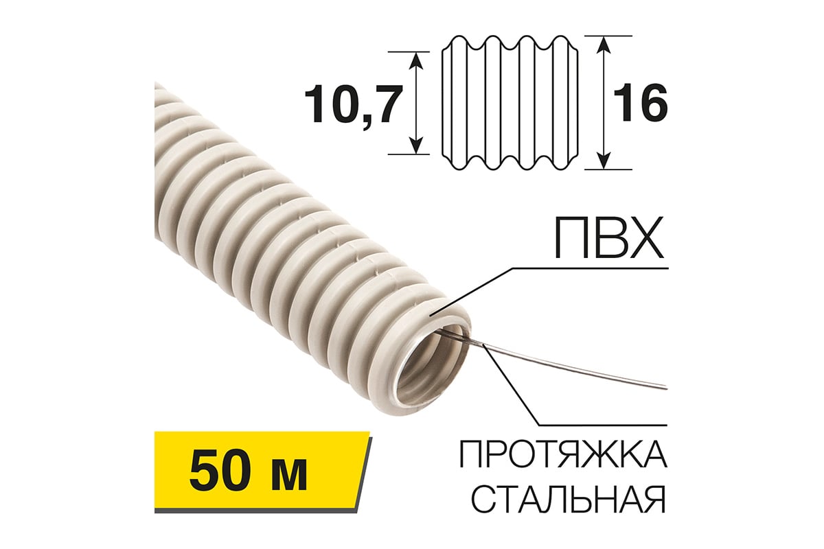 Гофрированная труба из ПВХ REXANT с зондом d 16 мм серая 50 м 28-0160-50