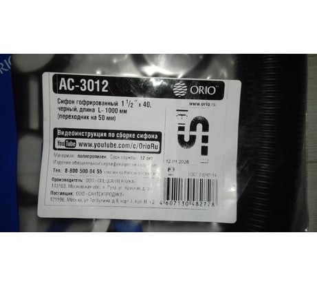 Гофрированный сифон ORIO 1 1/2x40 черный, длина 1000мм переходник на 50 мм АС-3012