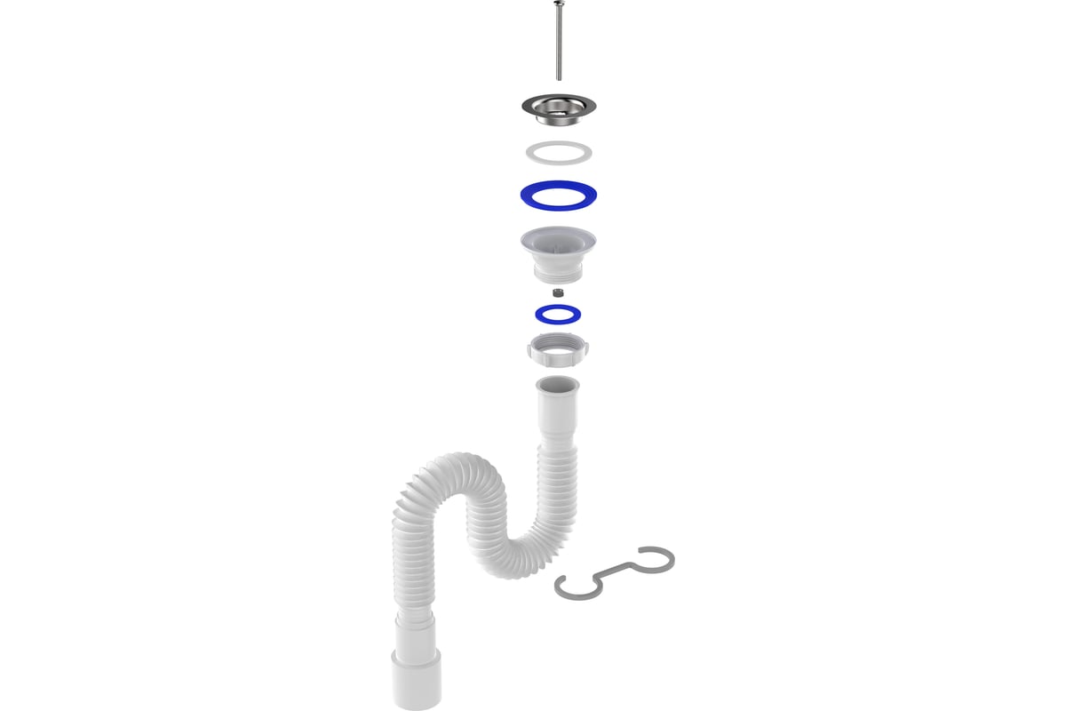 Сифон гофрированный от бренда Aquant для раковин и умывальников с диаметром сливного отверстия 42-48 мм. Выпуск 1 1/4" - разборный, без перелива, с металлической решеткой 64 мм предельно прост в монтаже: гофрированная труба соединяется с выпуском, сгибается и фиксируется специальным крепежом в виде латинской буквы "S" для создания гидрозатвора. Длина трубы увеличенная 475-1100 мм с универсальным выходом в канализацию диаметром 40/50 мм.