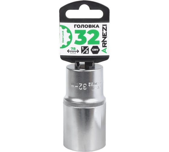 - Головка торцевая ARNEZI Gear Lock, 32 мм, 1/2", удлинённая.