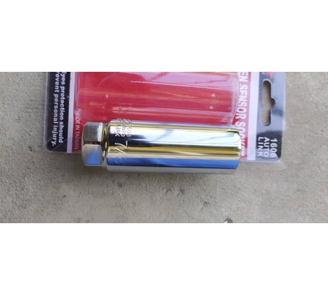 Хорошая крепкая разрезная головка от известного производителя. Размер чуть больше стандартной метрической головки на 22, но она дюймовая, поэтому это не недостаток. Гайка у основания головки подходит под ключ 26 мм. Длинна прорези в головке 64 мм, ширина около 7 мм (думаю большинство проводов пролезет) Диаметр головки 33 мм, внутренний лиаметр в узкой части около 23 мм, датчик входит с запасом по 1,5 мм по всему радиусу Мне почти идеально подошла для замены кислородного датчика , на движке H4M у Рено Логана. Позволив выкрутить без повреждений, не слизав грани, прикипевший старый кислорный датчик ( разумеется с использованием ВДшки). Датчик немного люфтит при расположении в головке, но давление на него оказывается более равномерно чем при откручивании ключем, и работать в узком пространстве гораздо более удобнее.