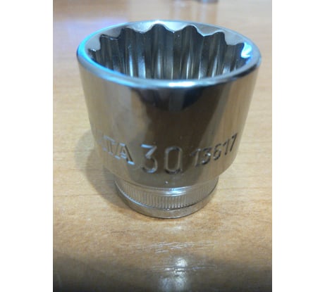 Головка торцевая 1/2", 30 мм, 12-гранная, очень прочная, выполнена из хромованадиевой стали. Товар очень надёжный, ни разу меня не подъвёл. Пользуюсь около года, почти ежедневно. Цена допустимая, для такого качества. Советую приобрести.