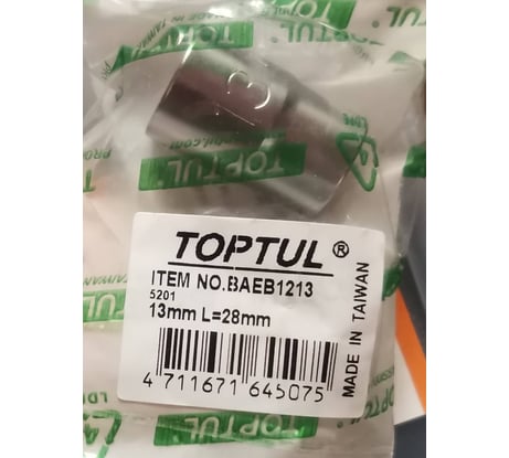 Головка торцевая 12-гранная 13 мм, 3/8"DR TOPTUL BAEB1213