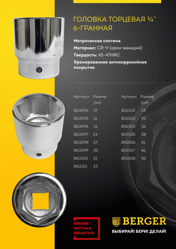 Отзывы о торцевой головке Berger BG 3/4" 50мм BG2108