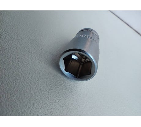 Эта головка на 10 стала для меня рабочей лошадкой. Она идеально садится на грани гаек и не срывает их даже при сильном затяге. Толщина стенок внушает доверие, не треснула под нагрузкой от трещотки. Хром-ванадиевое покрытие стойкое, лишь немного облезло по краям после лет использования. Без нее я уже не представляю свой инструментальный ящик.