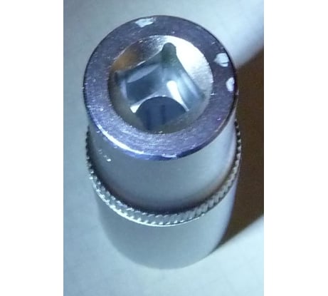 Диаметр головки 26мм, диаметр хвостовика 22мм. Минимальная толщина стенки 2мм. Лыски на глубине в соответствии с расположением шарика воротка. Номер головки обозначен мелким шрифтом. Вес 114гр. На торце хвостовика несколько проплешин в покрытии хрома. Покрытие матовое.