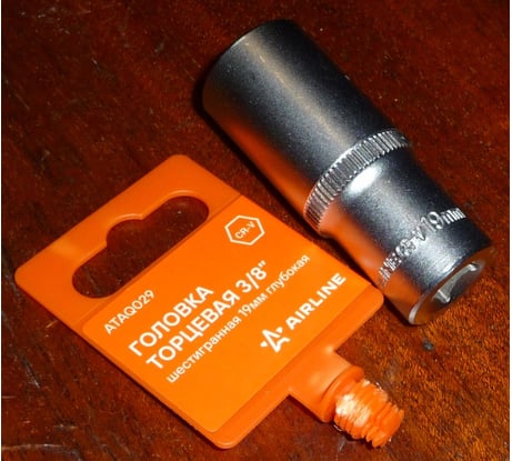Торцевая головка Airline 3/8" шестигранная 19мм глубокая, пласт.подвес ATAQ029