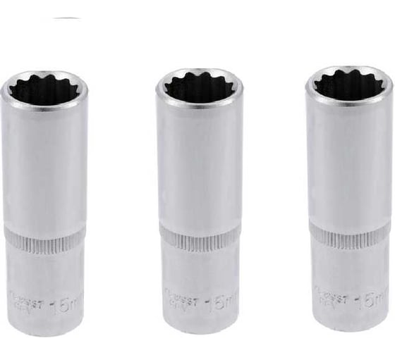 - Головка торцевая 12-гранная 1/2 15мм длинная CrV, 3 штуки