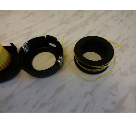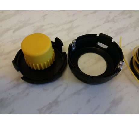 Удобная установка лески: не надо прилагать усилий как в других конструкциях. Крышка легко снимается при необходимости и в тоже время надёжно крепится при работе (не соскочит). Материал катушки прочный (кошу там, где в траве есть камни и прочий мусор).